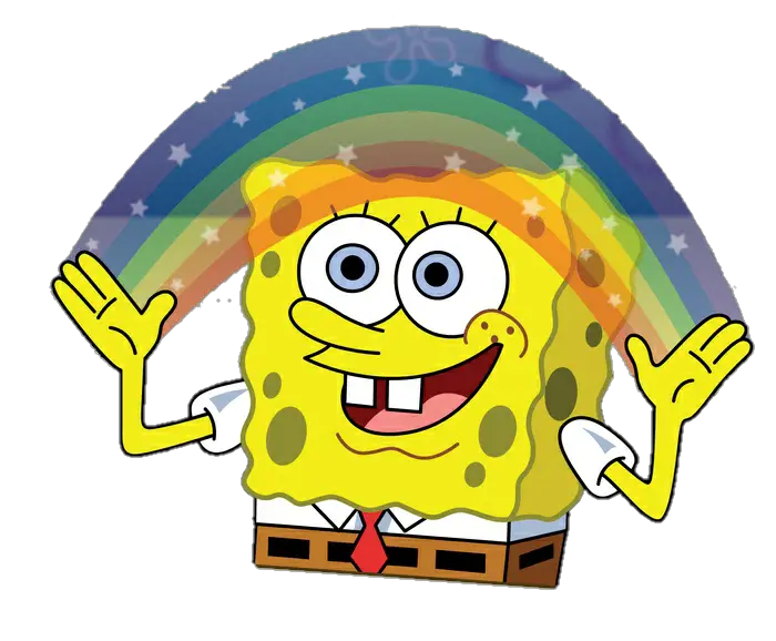 Cuadro del episodio 8 de la temporada 3 «Caja idiota», donde Esponja dice «¡imaginación!» Este momento se convirtió en un meme famoso.