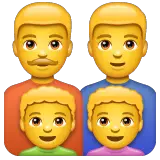 Emojis may look different across platforms. Each web service, OS, or gadget manufacturer can create an Emoji design according to their corporate style and vision. Here, you can check out what the 👨👨👦👦 Family: Man, Man, Boy, Boy Emoji looks like on the most popular platforms: