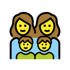 Emojis may look different across platforms. Each web service, OS, or gadget manufacturer can create an Emoji design according to their corporate style and vision. Here, you can check out what the 👩👩👦👦 Family: Woman, Woman, Boy, Boy Emoji looks like on the most popular platforms: