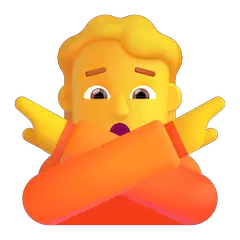 Person Gesturing NO emoji is the character showing a โnoโ sign with the crossed hands placed in front of the torso. In the case of this emoji, gender is not essential, but still, most of its versions are female. The meanings are defined by the gesture the emoji illustrates โ it is always connected to disapproval, disagreeing, forbidding, and so on.
