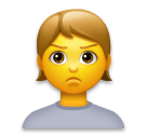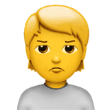 Person Pouting emoji is a character whose gender is not essential (still, itโs a ๐ฉ Woman in most cases) and who looks grumpy and disappointed. However, not many users perceive it as actually pouting (it seems pouting only in the case of HTC, which is also the only one that may be called genderless). Instead, the versions of Google, LG, and Microsoft look more like they were unpleasantly surprised by something, the ๏ฃฟ Apple's and Messengerโs versions look like they do not believe in what is being said, and so on. So, the meaning is primarily up to the user.